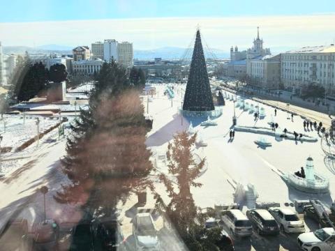 Глава Бурятии Алексей Цыденов поделился в своём Telegram-канале фотографией, сделанной из окон рабочего кабинета, с видом на площадь Советов. На снимке изображён солнечный ледовый городок и ёлка. Алексей Цыденов отметил, что сегодняшний день выдался особенно солнечным.