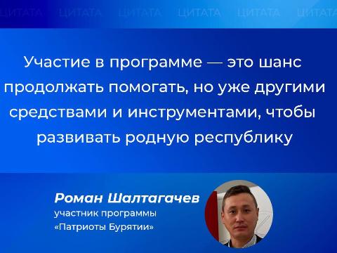 Роман Шалтагачев участник программы «Патриоты Бурятии», получил предложение занять должность в министерстве промышленности и торговли Бурятии, где он ранее проходил стажировку по время обучения по программе.