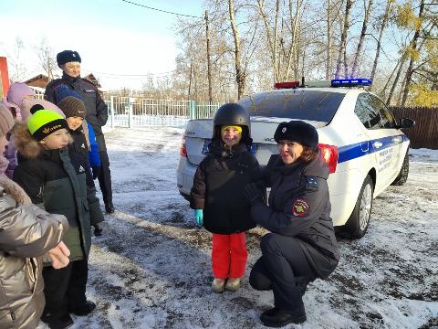 В конце мероприятия инспекторы предложили ребятам примерить бронежилет и защитный шлем. Желающих оказалось полно! Эта встреча принесла детям не только массу удовольствия, но и ценные знания, которые помогут юным пешеходам освоить навыки безопасного поведения на улицах и дорогах.