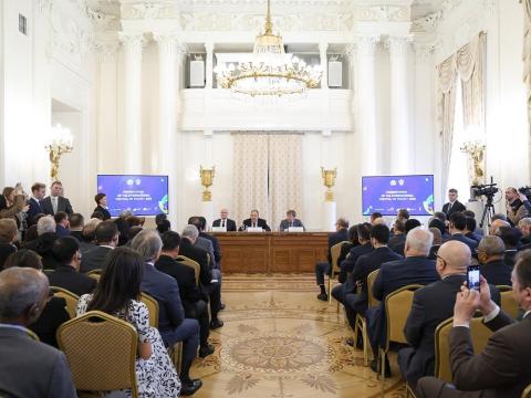 Накануне его презентовали представителям аккредитованного в Москве дипломатического корпуса. Присоединились более 120 представителей посольств 84 государств Европы, Азии, Африки и Латинской Америки, что подчеркивает масштаб и международное значение предстоящего события.