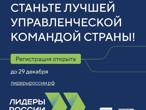 Регистрация для участия в конкурсе «Лидеры России. Команда» открыта до 29 декабря включительно на официальном сайте лидерыроссии.рф.