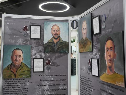 В Иркутске открылась Всероссийская выставка «Они сражались за Родину!», посвященная бойцам специальной военной операции. В рамках экспозиции представлены портреты, написанные маслом на холсте. Каждый сопровождается биографическим рассказом. Пять из этих историй – о бойцах СВО из Иркутской области.