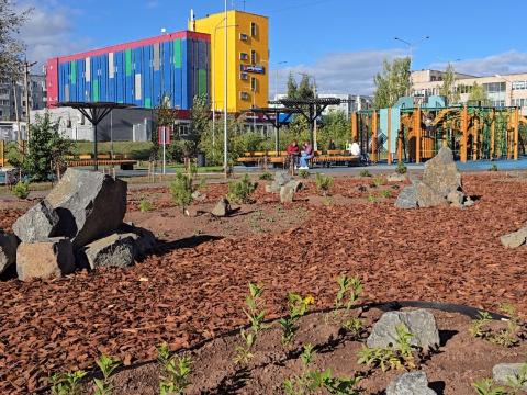 Сквер у школы № 41, расположенный между торговыми центрами «Инва» и «Парус» в 5-м микрорайоне Энергетика, стал победителем в номинации «Благоустройство площади, улицы, бульвара, сквера, набережной или иной территории общего пользования как зоны пешеходного транзита, общения людей, развлечения, оказания услуг». Благоустройство данной общественной территории завершилось летом прошлого года, и она также победила в рейтинговом голосовании 2024 года в рамках программы «Формирование комфортной городской среды».
