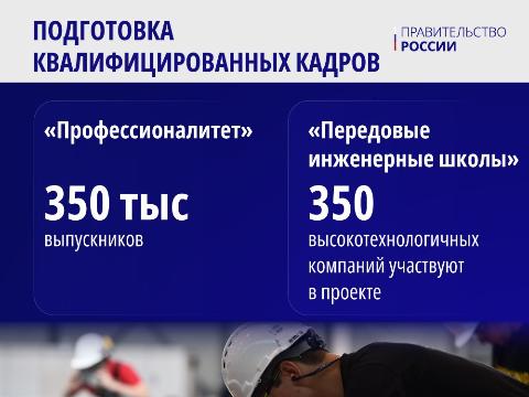 В рамках программы «Профессионалитет» уже выпустились 350 тысяч специалистов.