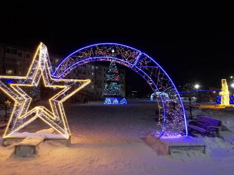 - Наше световое новогоднее оформление площади Победы готово. Только посмотрите, какие красивые и необычные инсталляции, сколько огней на них и на ёлке!