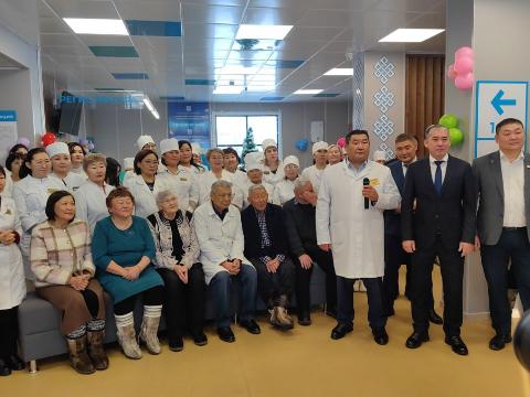 В селе Хоринск состоялось торжественное открытие новой поликлиники Хоринской центральной районной больницы. Здание выполнено из модульных конструкций, что позволило возвести его в короткие сроки.